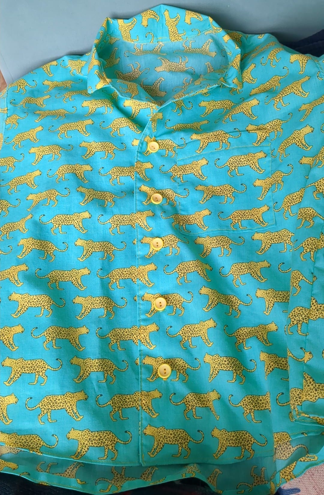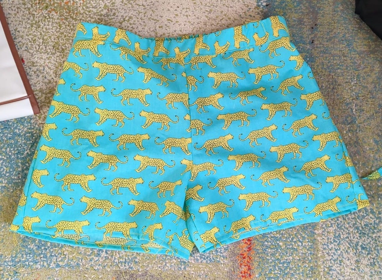 I made them again in a nice lightweight Indian block print fabric just in time for the hot weather. And then again in another nice lightweight Indian block print fabric. Then I realised I needed to make something else because there’s only so many times you can make a pair of shorts and I still had about SIX METRES OF NEON GREEN LEOPARD PRINT material left.